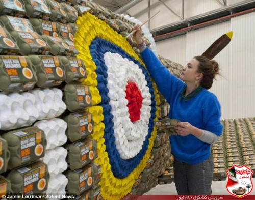 یک زوج خلاق، مدلی با اندازه واقعی یک جنگنده را توسط شانه های تخم مرغ ساختند.