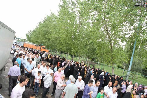 نمایشگاه طرح ضیافت در مصلای تهران پذیرایی مردمی است که ایستادن 6 ساعته و بیشتر را در صف ها تحمل می کنند تا بتوانند گوشت و مرغ دولتی دریافت کنند.